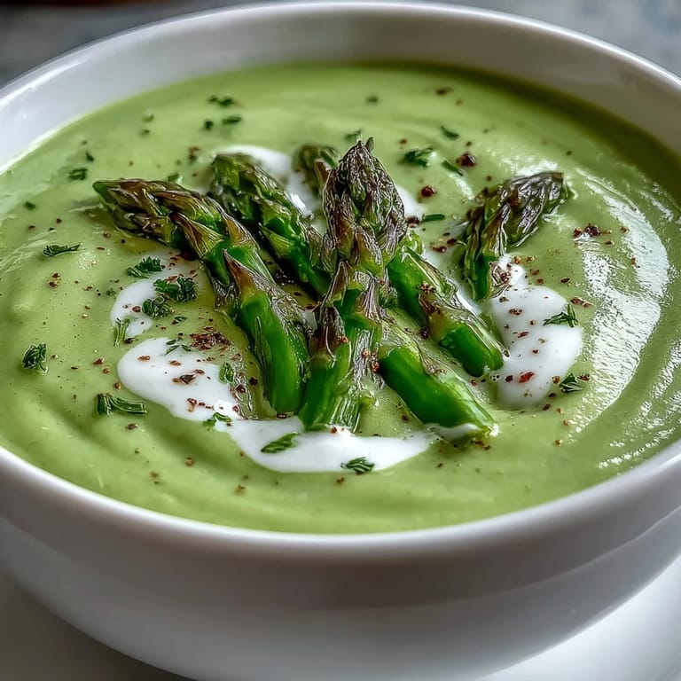 Save There's a moment every spring when the farmers market suddenly fills with bright green asparagus bundles, and I can't resist buying more than I need. One April afternoon, I found myself with a pile of spears and an urge to make something that felt both simple and special. That's when asparagus soup became my go-to, a dish that transforms a single vegetable into something silky and sophisticated without demanding much time or fuss.