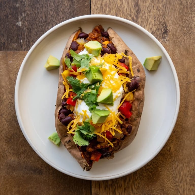 Save Hearty sweet potatoes are baked until tender, then filled with a robust, bean-packed chili for a flavorful, wholesome weeknight meal that requires minimal hands-on prep.