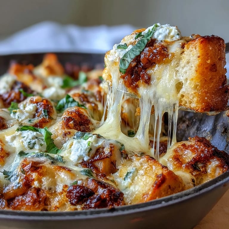 The beauty of this dish is that you're not trying to recreate traditional lasagna—you're building something entirely new. The bread cubes don't need to be perfectly uniform; some will be crispy on the edges and tender inside, others will soak up more sauce. This variation in texture is what keeps every bite interesting, not a flaw to avoid.