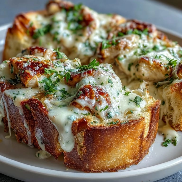 Save The first time I made Chicken Alfredo Garlic Bread, I was hosting a last-minute game night and needed something that felt indulgent but wouldn't keep me trapped in the kitchen. My friend Sarah took one bite and literally stopped mid-sentence, her eyes widening as she reached for another slice before even finishing the first one.