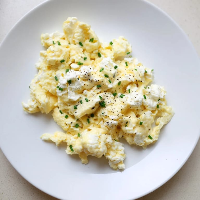 Save I stumbled onto this technique during a phase where I was trying to eat more protein without living on chicken breast and powder. My grandmother used to add a spoonful of sour cream to her scrambled eggs, which made them incredibly soft, but I had no cottage cheese in the house that day. What came out of the pan surprised me—curds that were pillowy and light, with tiny pockets of creamy sweetness scattered throughout like little surprises.