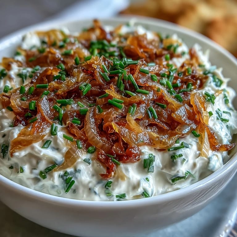 Save There's something about the smell of onions slowly turning golden in butter that makes a kitchen feel like home, even if you've just moved in. My neighbor knocked on my door one evening asking if I had any good dips for an impromptu gathering, and I realized I had Greek yogurt and time—so I started caramelizing onions almost by accident. What emerged was this creamy, tangy dip that tasted like it had been in my family for generations, even though I'd invented it on the spot. Now it's the first thing people ask me to bring, and honestly, I've stopped being surprised by how simple ingredients transform when you give them patience and a little heat.