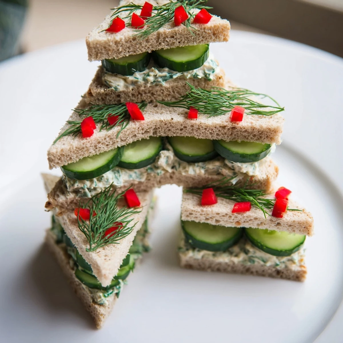 Save Delightfully fresh and visually charming, these whimsical finger sandwiches layer cool cucumber and herbed cream cheese in a festive tree shape—perfect for parties, afternoon teas, or kid-friendly gatherings.