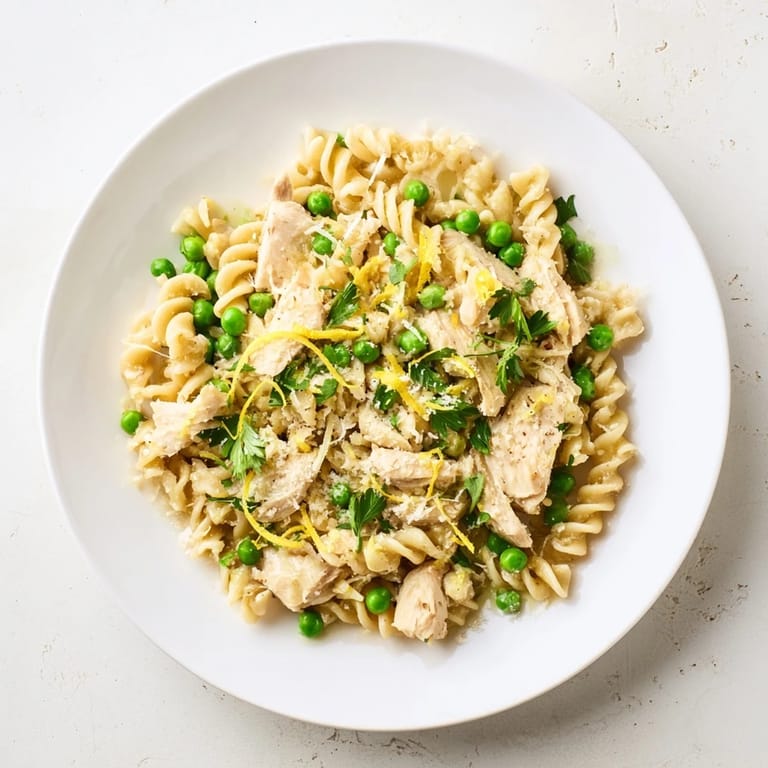 Save My daughter walked into the kitchen one Wednesday evening and announced she wanted "the twisty pasta with the little green balls." I knew exactly what she meant. This garlic butter chicken and pea pasta had become our midweek savior, the kind of dish that feels like a hug after a long day. The smell of garlic sizzling in butter fills the house within minutes, and by the time the pasta hits the pan, everyone is already hovering near the stove. It is quick, comforting, and somehow tastes like you spent way more time on it than you actually did.