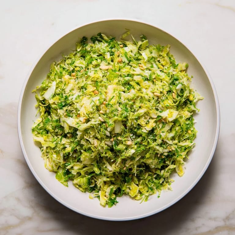 This salad is a wonderful way to enjoy Brussels sprouts in their raw form, retaining maximum crunch and nutrients. The finely sliced shallots add a subtle bite, while the honey in the dressing balances the acidity of the lemon for a harmonious taste. Tossing the salad just before serving ensures each bite remains fresh and crisp.
