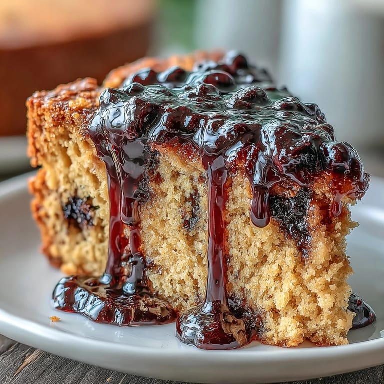 Save My neighbor handed me a jar of homemade black currant jam one afternoon, the kind with seeds that catch between your teeth, and I stood in my kitchen wondering what on earth to do with it. Then it hit me: what if I took that nostalgic peanut butter and jelly sandwich feeling and turned it into something you'd serve on an actual plate? This cake became my answer, and now whenever I make it, people ask why they've never thought to combine these flavors before.
