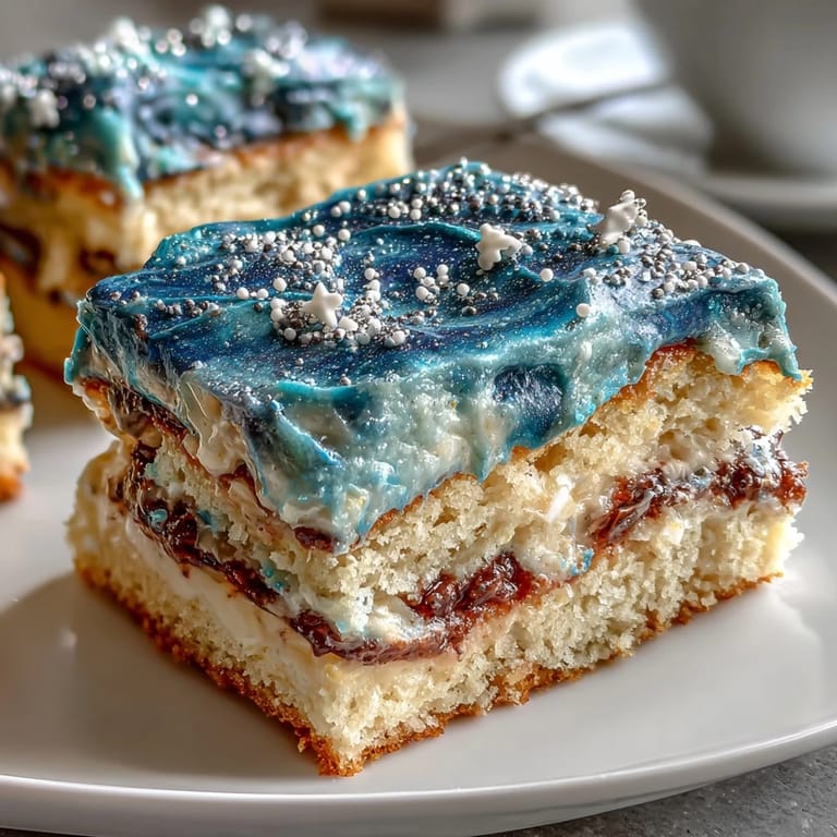 Save My friend texted me a photo of her Pisces birthday coming up, and instead of the usual bakery cake, she asked if I'd make something cosmic. Standing in my kitchen at midnight, scrolling through zodiac imagery, I got this wild idea to bake a galaxy cake in her honor. The vision was so clear: swirls of deep blue and purple, stars scattered across layers, something that looked like it belonged in a planetarium. When I finally pulled that first cake from the oven, the house smelled like vanilla and possibility, and I knew this was the cake that would make her feel seen.