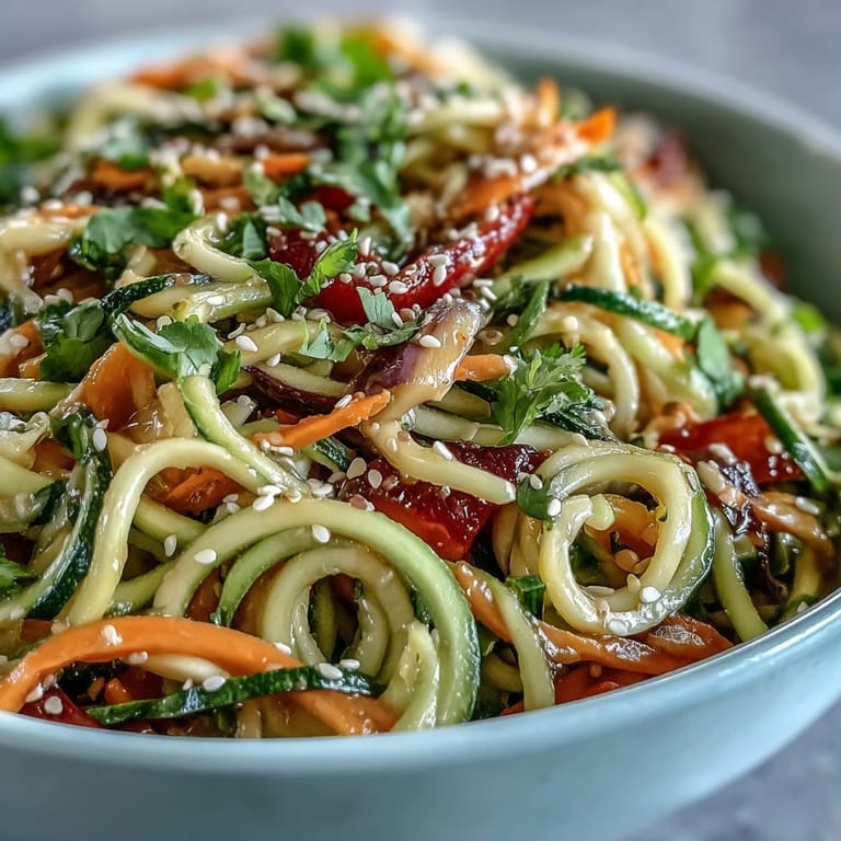 Save My friend Sarah brought this noodle salad to a summer potluck, and I watched people go back for seconds even though the main course hadn't been served yet. There was something about the way those spiralized vegetables caught the light, all glossy from that amber-colored dressing, that made everyone want to dig in immediately. I asked for the recipe that same afternoon, and she laughed, saying it was less of a recipe and more of a feeling—a way to make vegetables exciting when the heat makes cooking feel impossible. Since then, I've made it dozens of times, each version slightly different depending on what's in my crisper drawer. It's become my go-to when I need something that tastes intentional but takes almost no actual cooking.