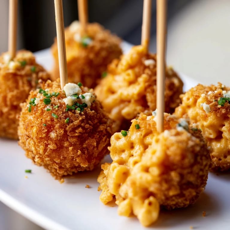 - Heat 2 inches of vegetable oil in a deep pot to 350°F (175°C). Fry mac pops in batches, turning occasionally, until golden and crispy (2–3 minutes). Remove with a slotted spoon and drain on paper towels.