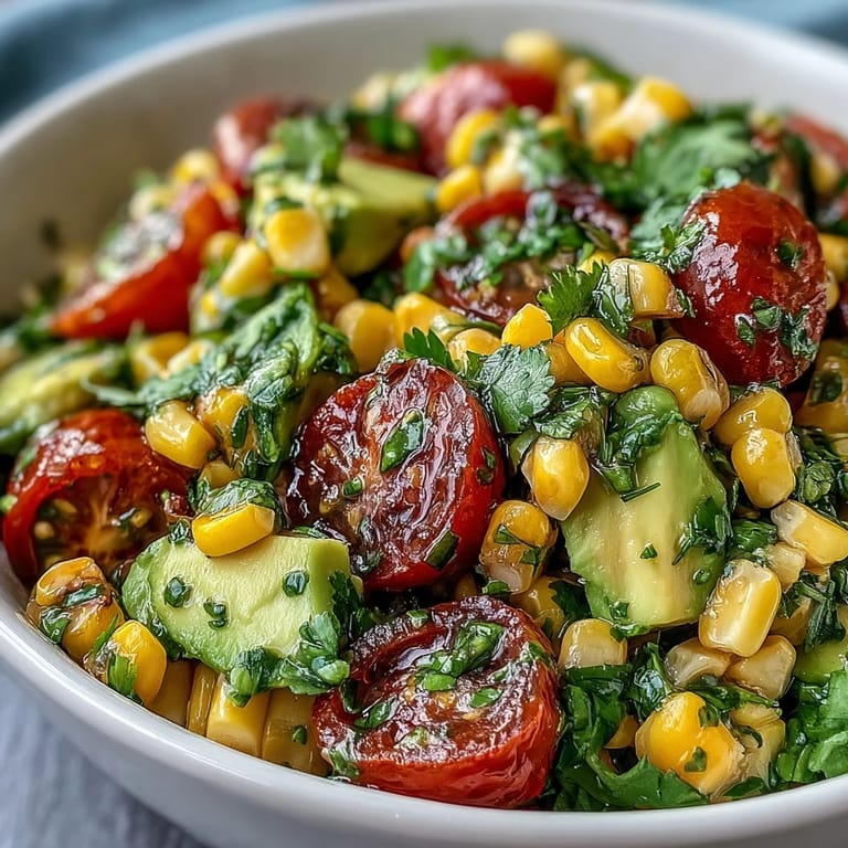 Save My neighbor Maria showed up at my door one July afternoon with a bag of corn so fresh it still had silk clinging to the husks. She'd spent the morning at the farmer's market and insisted I do something special with it that same day. I wasn't sure what she meant until I started cutting into a tomato so ripe it practically fell apart in my hands, and suddenly this salad came together like it had been waiting for that exact moment.