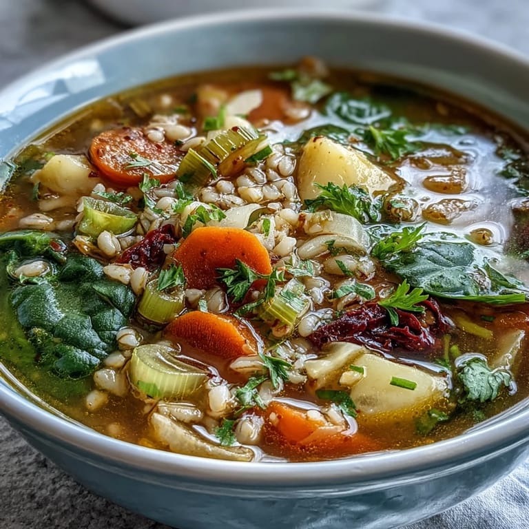 Save There's something about the week when the farmer's market shifts from root vegetables to tender spring greens that makes me want to cook this soup. I was standing in my kitchen on a chilly March afternoon, holding a bunch of baby spinach in one hand and a weathered rutabaga in the other, when it hit me: why choose between seasons when you can celebrate both in a single bowl? That's how this vegetable and barley soup came to be my go-to recipe for that in-between time.
