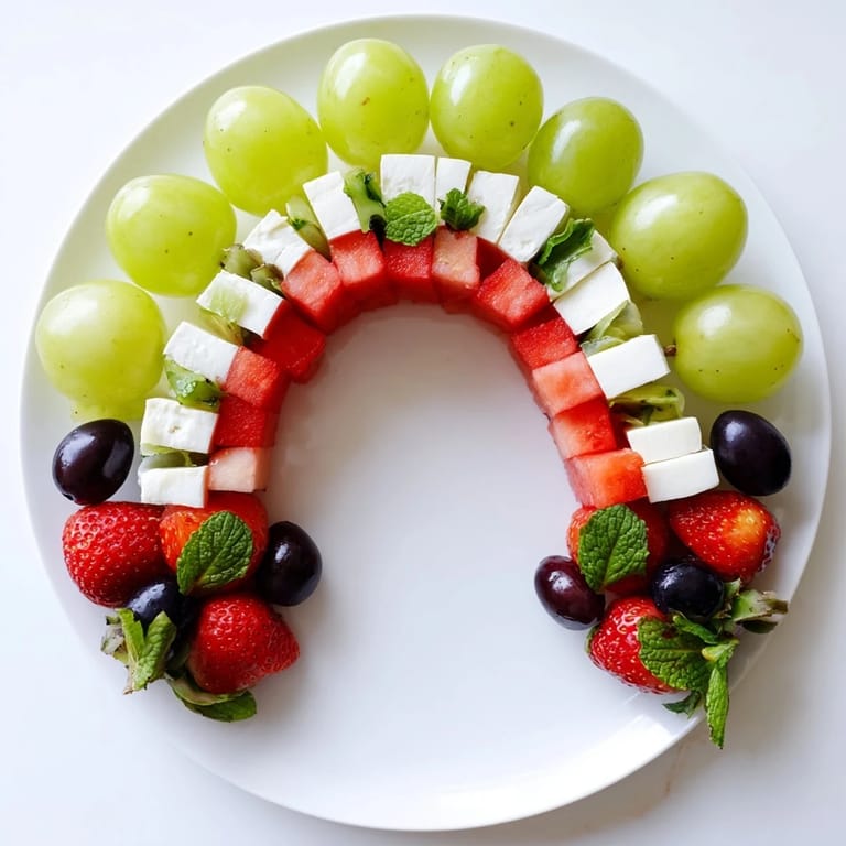 This platter has become my go-to for any warm-weather gathering because it works whether you're feeding four people or forty. It travels well if you assemble it on a platter with a flat bottom and cover it carefully with plastic wrap. The fruit stays beautiful for about two hours at room temperature, which is usually exactly how long a summer party lasts anyway. I've learned to prep everything in advance—wash and cut the fruit, slice or crumble the cheese, rinse the grapes—so that final assembly takes just minutes.